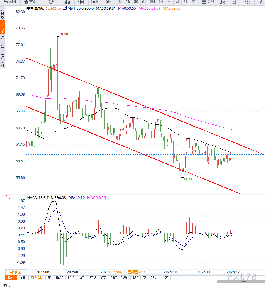 60美元关口成为短期最关键的技术压力位。该区域为前期密集成交带,具有强指向意义。一旦有效站稳,将打开通往62美元甚至更高位置的上涨通道。